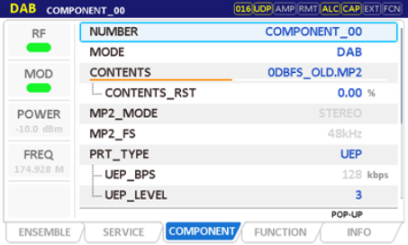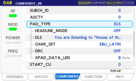 (3) CPMPONENT 00設(shè)置:MODE選擇DAB,任意mp2文件 PAD TYPE 選擇DLS/DL+ DLS Editable其余默認(rèn)。