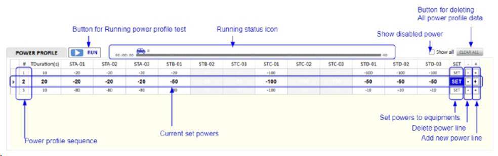 可以在功率配置器中導(dǎo)入功率配置文件,也可單獨(dú)設(shè)置每個(gè)發(fā)射機(jī)的功率水平,便于用戶模擬真實(shí)現(xiàn)場(chǎng)可能發(fā)生的各種發(fā)射機(jī)與無(wú)線電廣播信號(hào)環(huán)境。所有功率值都將根據(jù)所連接的設(shè)備自動(dòng)的檢查并限制大小,確保儀器能夠正常工作。