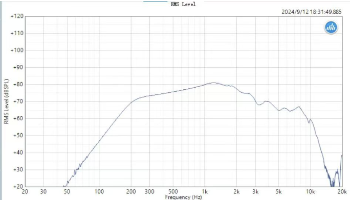首先需要測(cè)得被測(cè)物的頻響曲線,以喊話器為例,鏈路連接方式如圖2所示,頻率響應(yīng)測(cè)試結(jié)果如圖3所示。
