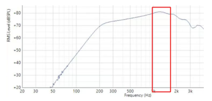 根據(jù)頻響曲線找到靈敏度最高位置處所對(duì)應(yīng)的頻率,以圖3的頻響曲線為例,靈敏度最高位置頻率在1.5kHz附近。