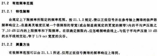 如圖1所示為12060.5中對(duì)有效頻率范圍指標(biāo)的相關(guān)描述,其他一些包含這項(xiàng)指標(biāo)的測(cè)試標(biāo)準(zhǔn)中關(guān)于這項(xiàng)指標(biāo)的描述可能有些出入,但測(cè)試方法其實(shí)大同小異。