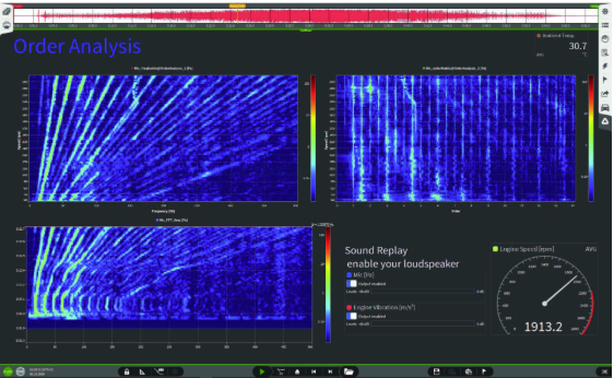 階次分析是一個將頻譜及時間歷程與旋轉(zhuǎn)部件的RPM(每分鐘轉(zhuǎn)數(shù))關(guān)聯(lián)起來的工具,用于揭示振動與噪聲機(jī)理。在旋轉(zhuǎn)和往復(fù)式機(jī)械中,載荷的變動和運(yùn)動部件的缺陷會引起振動,并相應(yīng)地輻射噪聲。振動的形態(tài)與機(jī)械運(yùn)動及靜止部件的結(jié)構(gòu)特性有關(guān),而階次分析能夠?qū)⑦@些振動和噪聲信號與旋轉(zhuǎn)部件的轉(zhuǎn)速聯(lián)系起來,從而揭示其內(nèi)在機(jī)理。