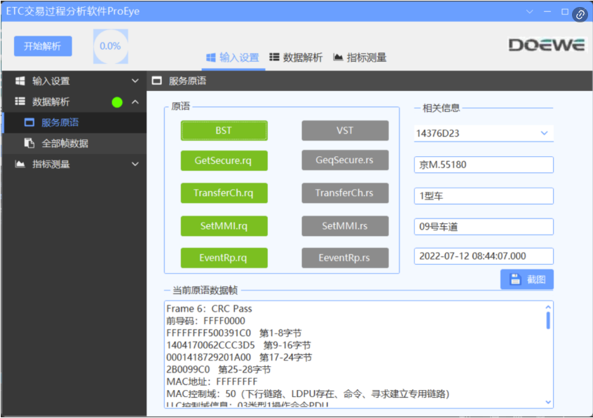 3)對所記錄的信號中的信息源碼進行分析,可以使用軟件進行輔助分析,例如使用北京度緯科技有限公司研發(fā)的ProEye軟件,可以直接解析出信號中包含的原語信息與其他相關信息。