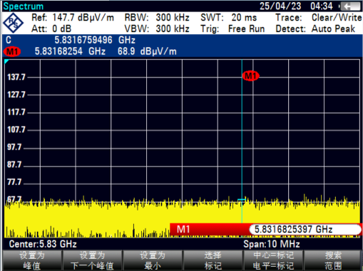 2)將測試天線與頻譜分析儀相連接,在頻譜分析儀上設置測試相關參數;