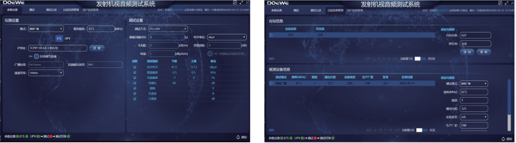 軟件提供多種功能界面,包括:參數(shù)設(shè)置界面、臺站信息管理界面、測試界面以及測試記錄界面。