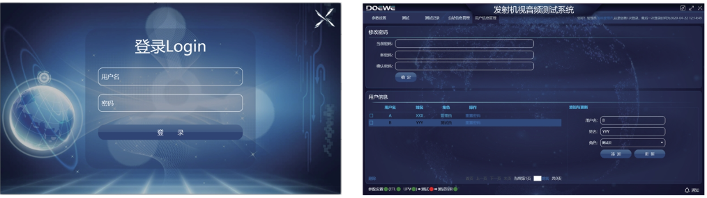 自動化控制及信息管理軟件能夠在測試過程中對廣播調(diào)制分析儀RWC2500A Plus與音頻分析儀A5進行控制與管理。如圖2所示,測試人員使用賬號登錄軟件進行測試,不同測試人員可使用不同的賬號密碼進行登錄測試,區(qū)分不同的登錄用戶有助于保護關(guān)鍵測試信息,防止關(guān)鍵設(shè)置的誤更改。