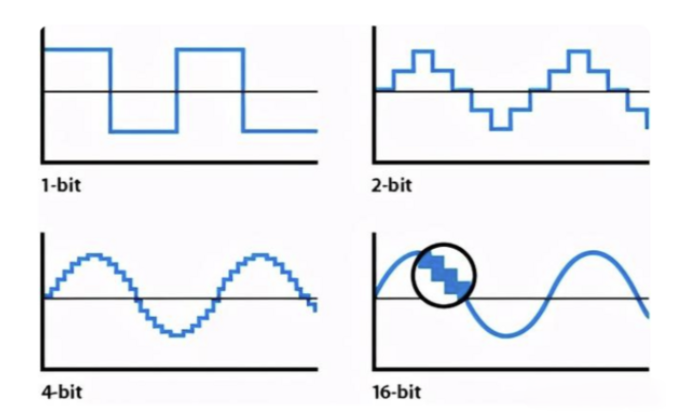 圖2 不同位深下采集同樣一個(gè)正弦波