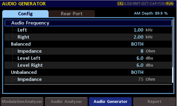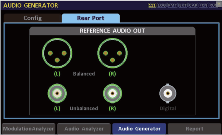 1、使用RWC2500A Plus的基帶音頻信號發(fā)生模塊時,首先可以在Audio Generator界面選擇Rear Port,在此界面可快速調整所需的音頻輸出接口(平衡/非平衡/數(shù)字),選擇好之后進入下一步。