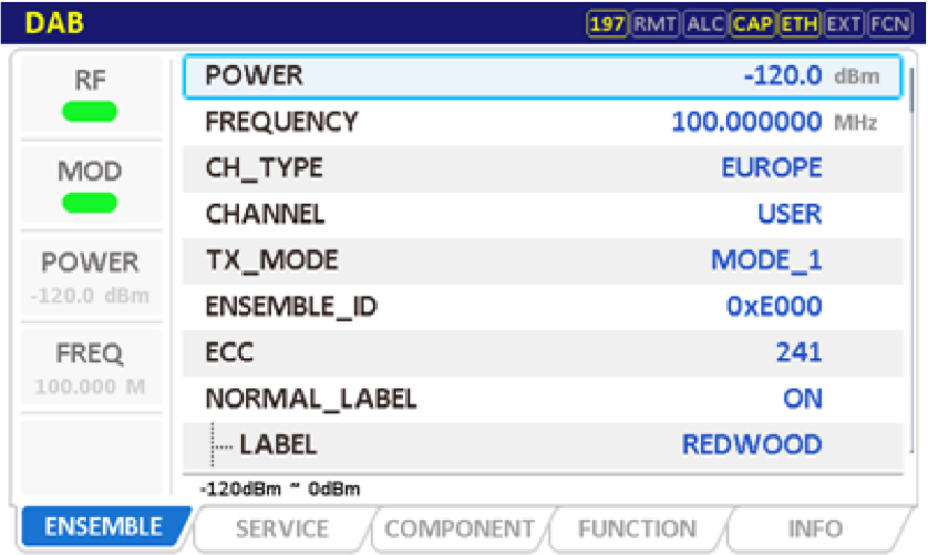 DAB信號(hào)通過無線廣播的方式傳輸,支持多種頻率范圍,通常在174~240MHz之間。采用單頻網(wǎng)(SFN)技術(shù),允許多個(gè)發(fā)射站在同一頻道同步廣播,有效節(jié)約頻譜資源。使用多臺(tái)RWC2010C可有效地進(jìn)行SFN測(cè)試。