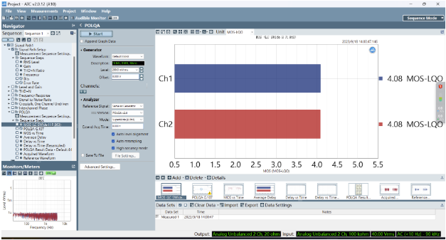 圖2 音頻分析儀POLQA功能典型測(cè)試界面