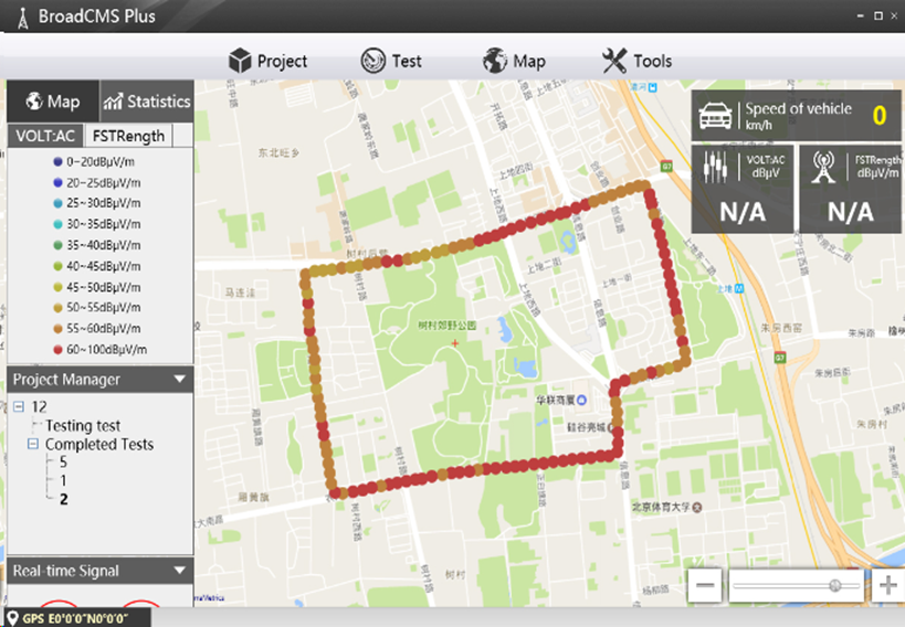 ● 能夠在地圖窗口實(shí)時(shí)顯示當(dāng)前測試位置和相關(guān)測試數(shù)據(jù);