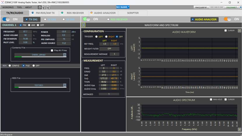 RWC2100F FM-RDS音頻分析設(shè)置界面展示: