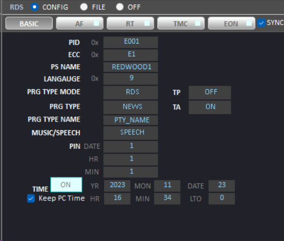測試對象為FM-RDS的發(fā)射機,使用我司的RWC2100F可進(jìn)行實時的FM-RDS內(nèi)容監(jiān)測,包括TA TP EON AF信息,以及RDS內(nèi)容中的拓展文本及時間內(nèi)容,實現(xiàn)全方位的發(fā)射機內(nèi)容測試。